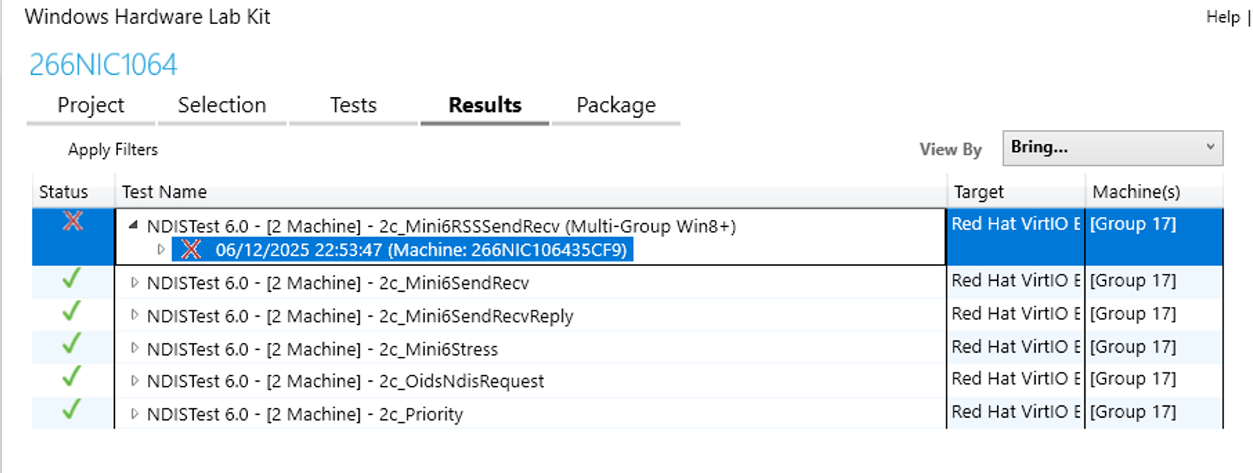 2. Run the <WHQL_testcase> in "Windows Hardware Lab Kit"