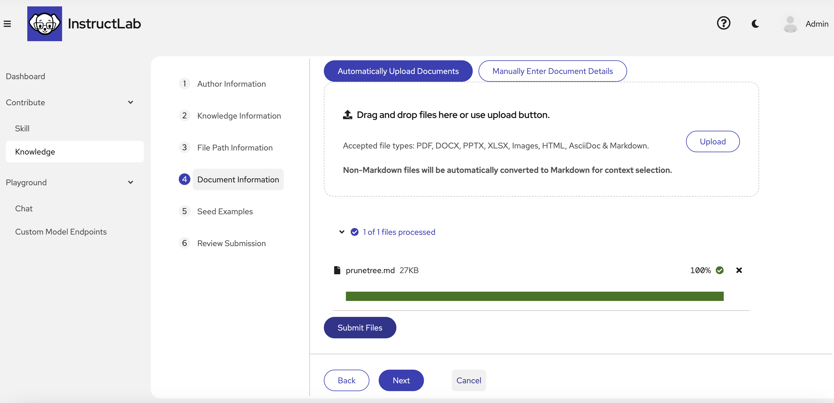 Improve the clarity of the action required to upload a document in the Document Information step of the Contribution Wizard. Right now, when you add a file to upload, a Submit button appears. This button is the same blue as the Next button at the bottom of the screen. This is confusing and the Submit button step is being missed.
