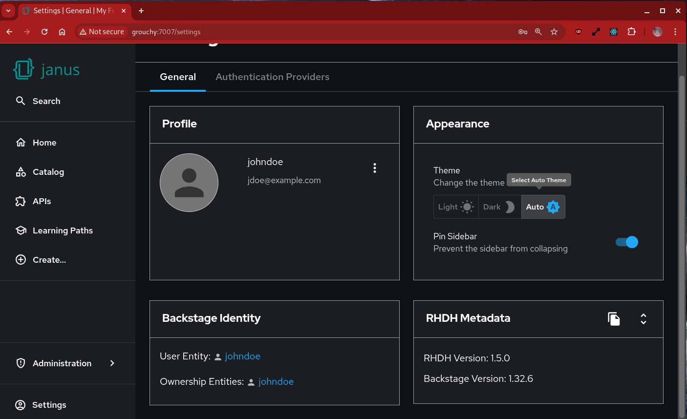 Until now part of the authentication implementation in RHDH is still using static code, so that adding authentication providers requires changes in the RHDH code itself.