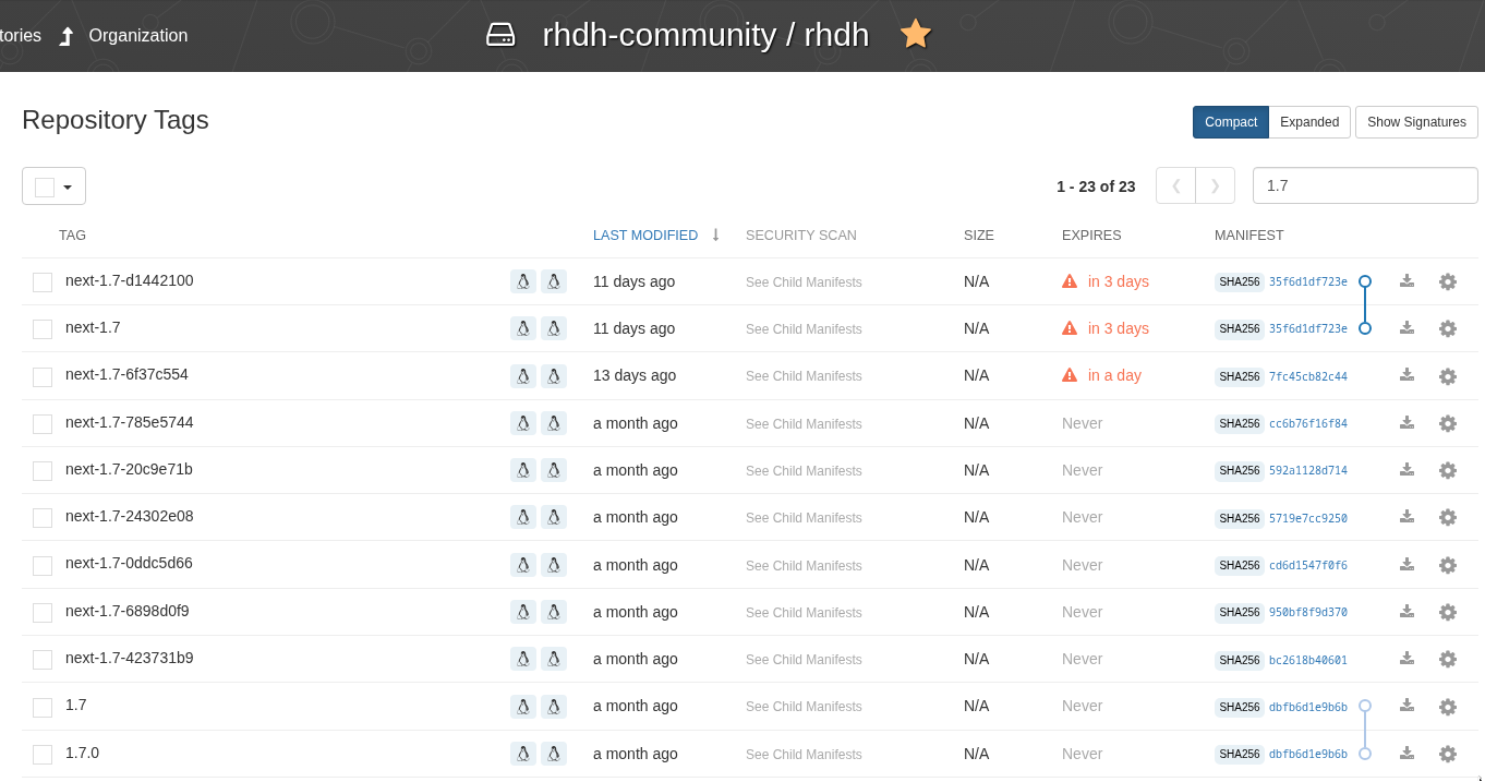• do we want to start publishing the same r.r.io 1.y.z tags to quay.io/rhdh so that we can point to 1.7.2 instead of just 1.7 ?