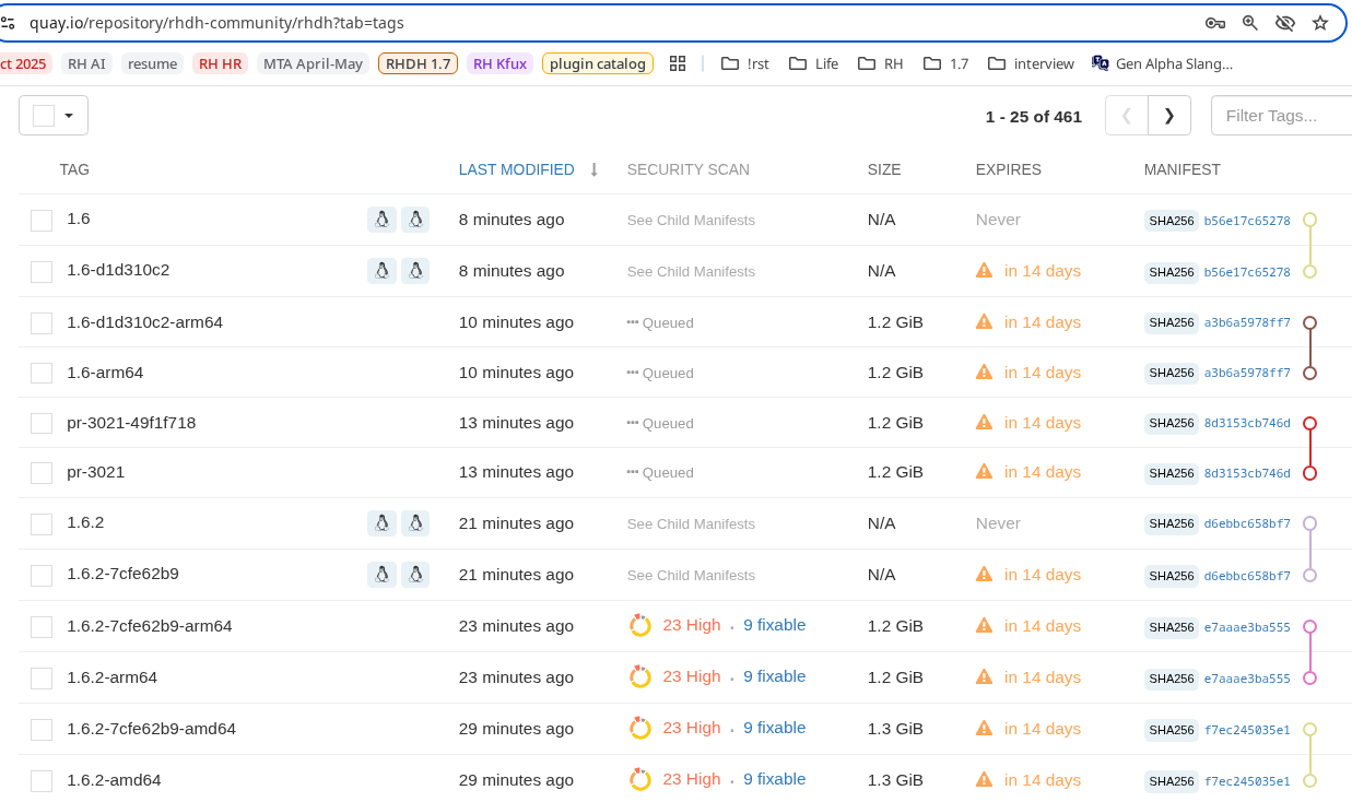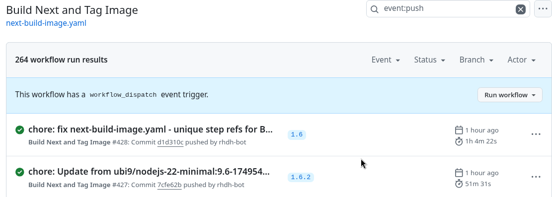 In RHIDP-7906, we updated tagRelease.sh to push BOTH a 1.6.z and 1.6 tag to the rhdh repo (so that rhdh-local users can follow the https://quay.io/rhdh-community/rhdh:1.6 tag). This triggered two multi arch builds: