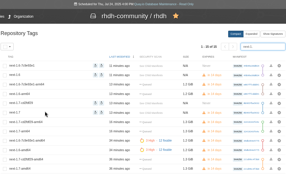 We have community builds that are ARM-compatible, but those builds are triggered from the main branch (providing a `next` image tag) or when a given Git tag is pushed (providing a `1.y` image tag). But `main` can quickly diverge from the release branches.