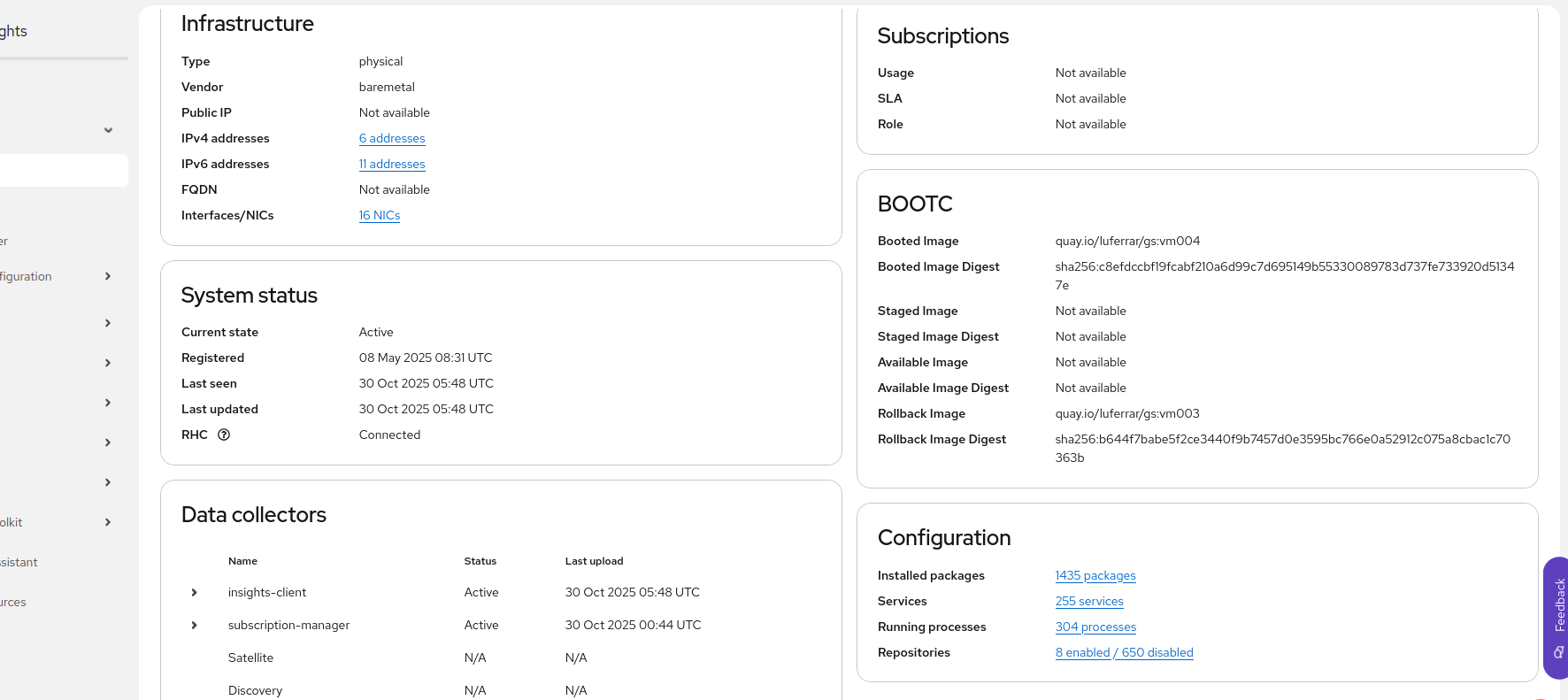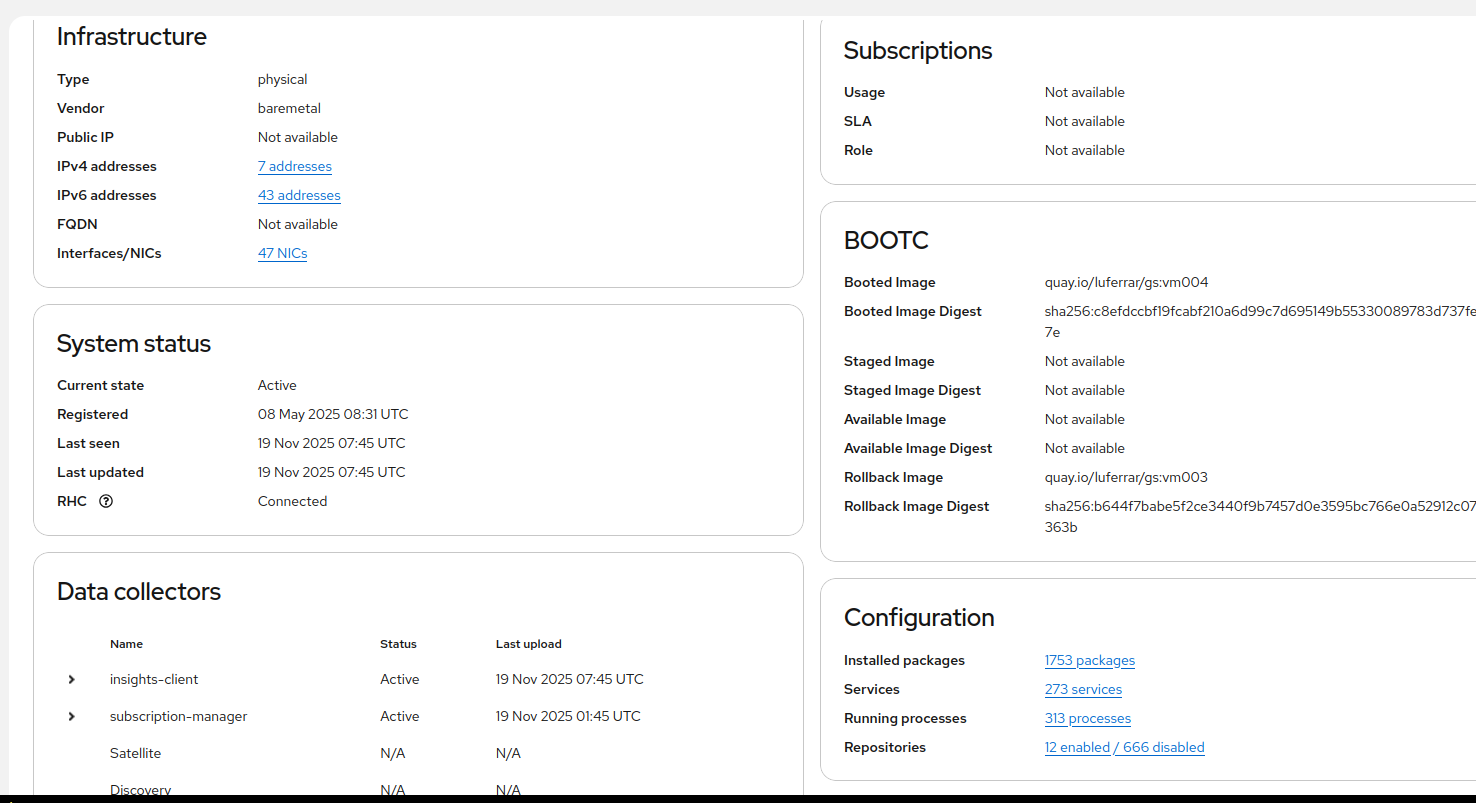 For some weird reasons in the Inventory the RPM machine shows up as Bootc booted (which is clearly not true). Bear in mind the RPM machine (screenshot from Inventory attached) is also running Microshift (installed as RPM).