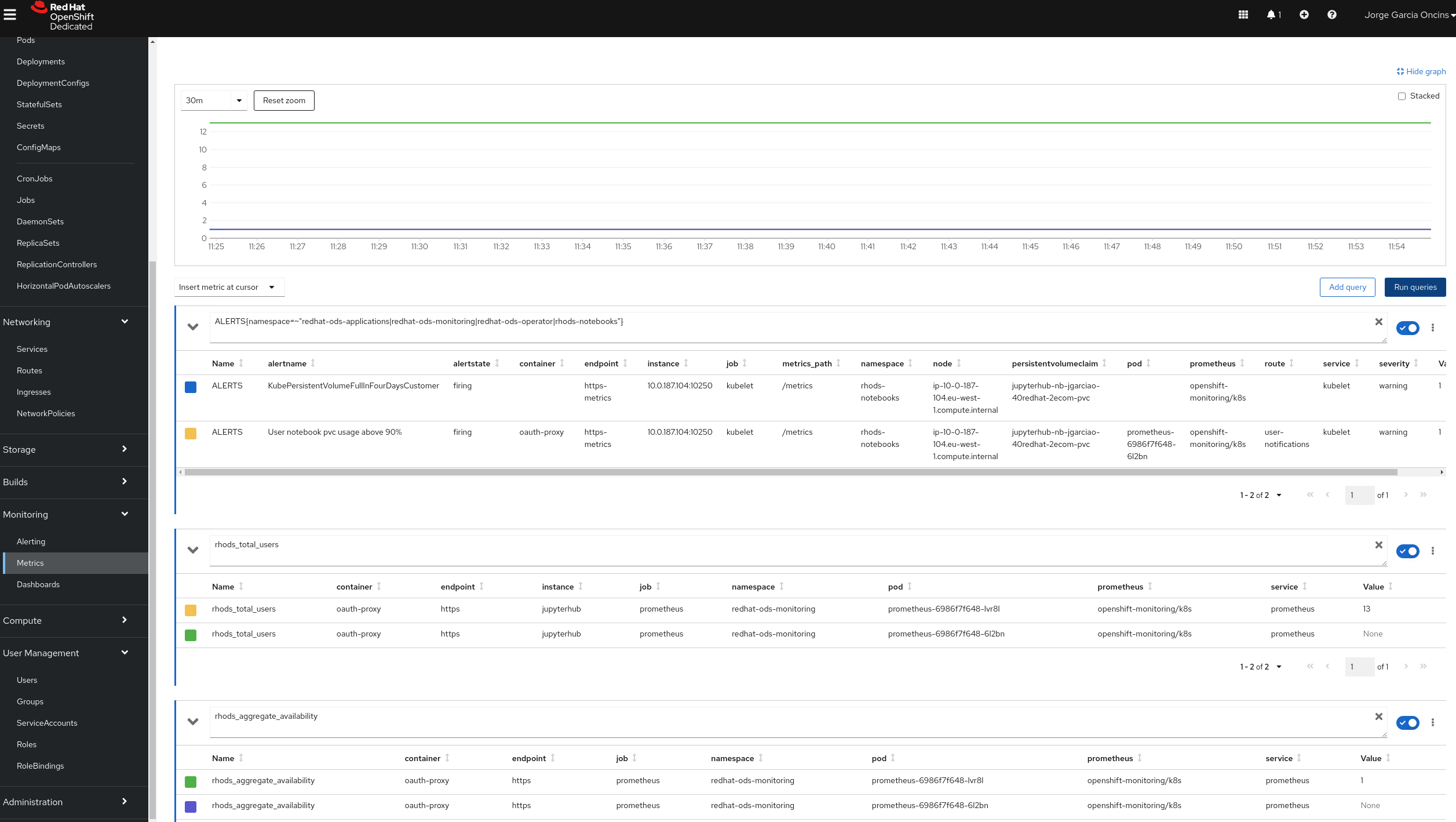 Federate alerts metric from RHODS Prometheus to cluster monitoring prometheus