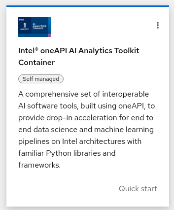 The "Intel oneAPI Ai Analytics Toolkit" (aka AiKit) tile has a "Launch" link (endpoint) which brings the user to JupyterHub. I guess the reason is because Aikit is accessible as notebook image from JH.