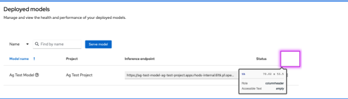 A11Y minor issues found for the Model Serving page