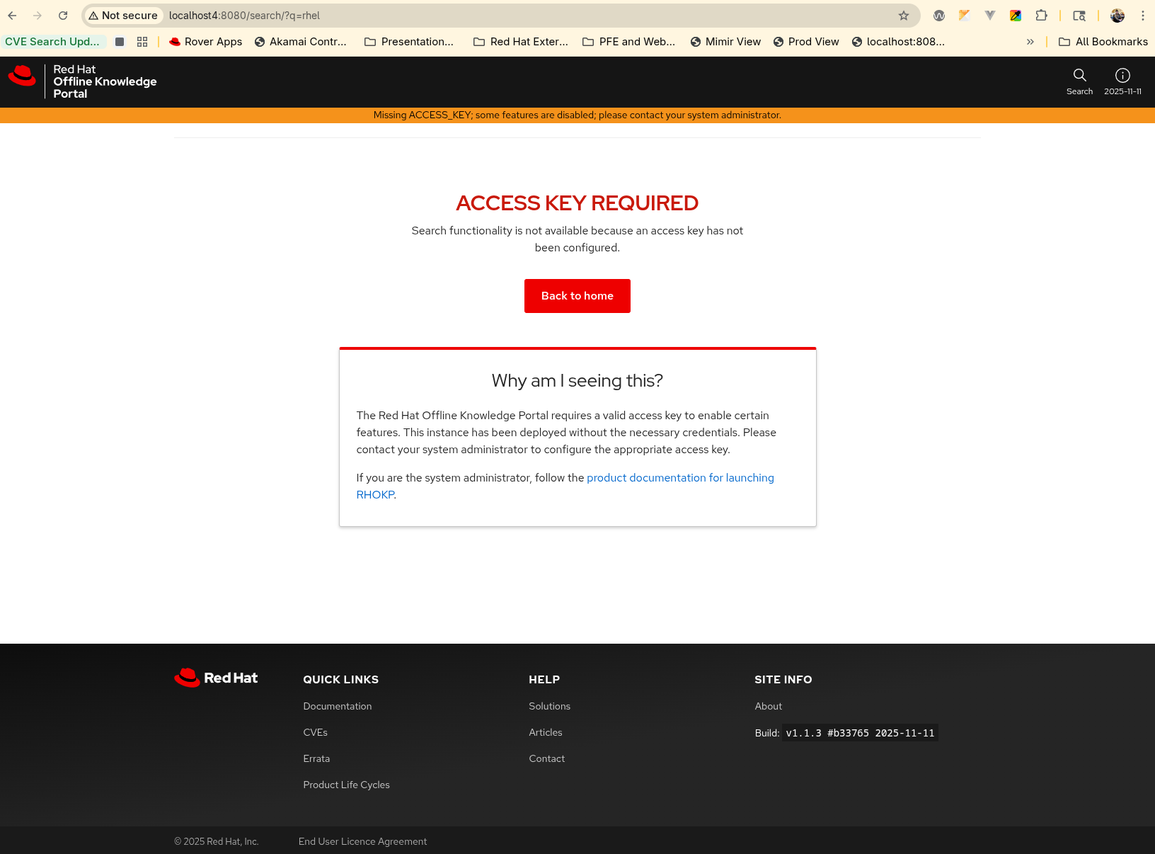 Add an alert or message to the UI about search not working without valid access key