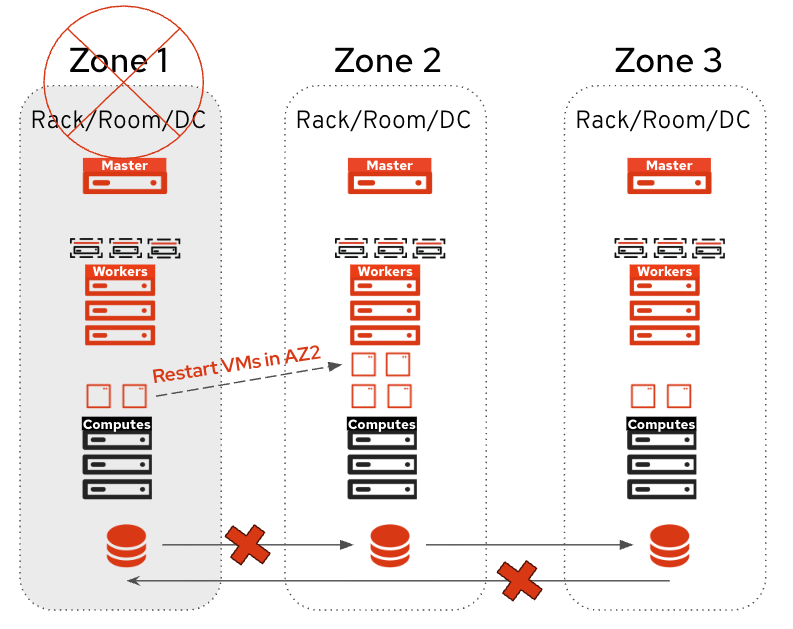 Customers, specially the ones coming from traditional virtualisation solution have strong requirements in terms of data recovery and failover. They want service continuity in case a local storage backend failure happens and be able to restart workloads on another zone.