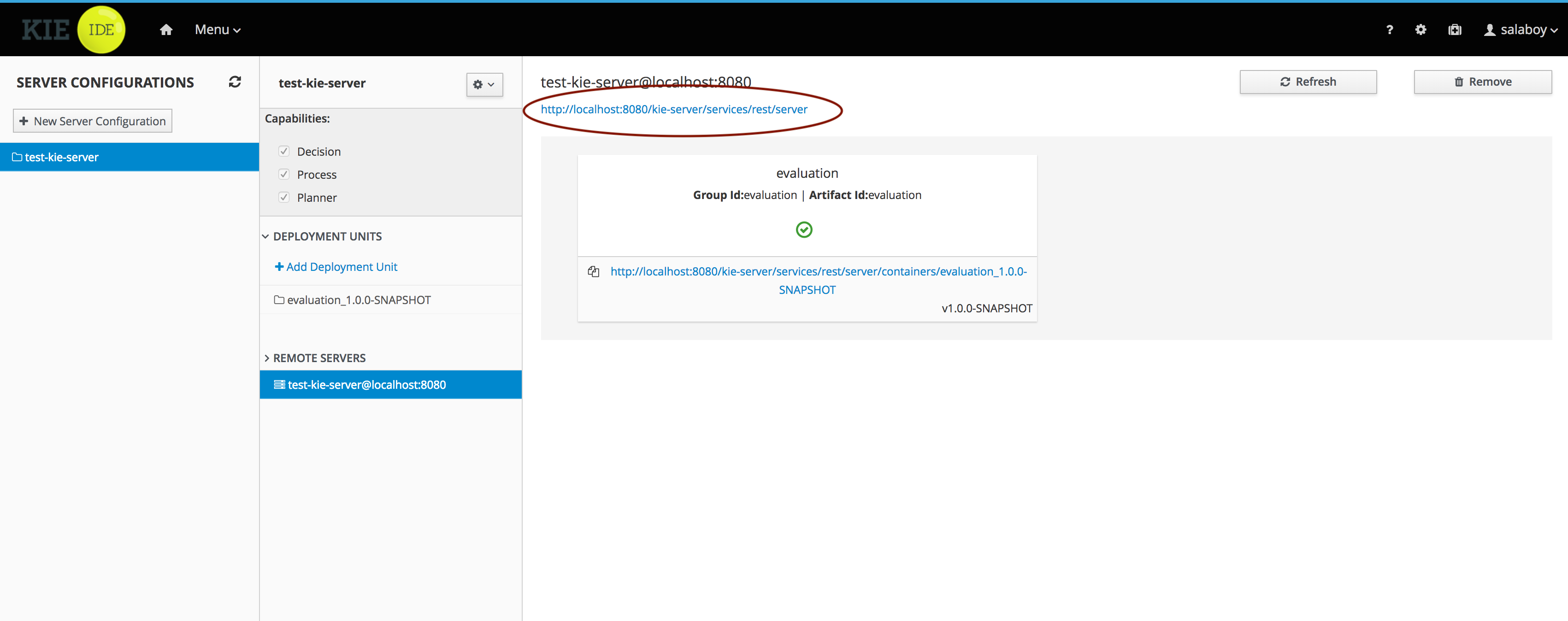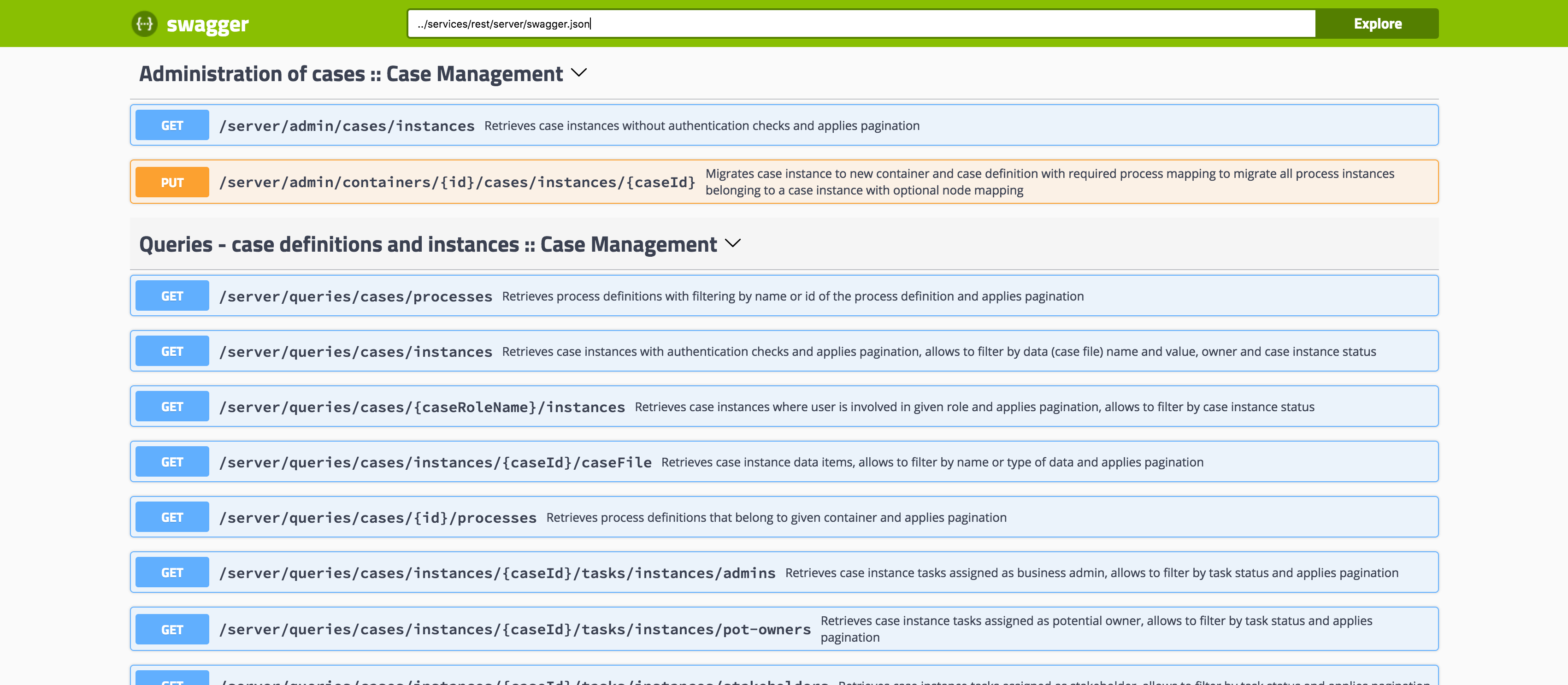 So, instead of showing http://localhost:8080/kie-server/services/rest/server, we'll show http://localhost:8080/kie-server/docs.