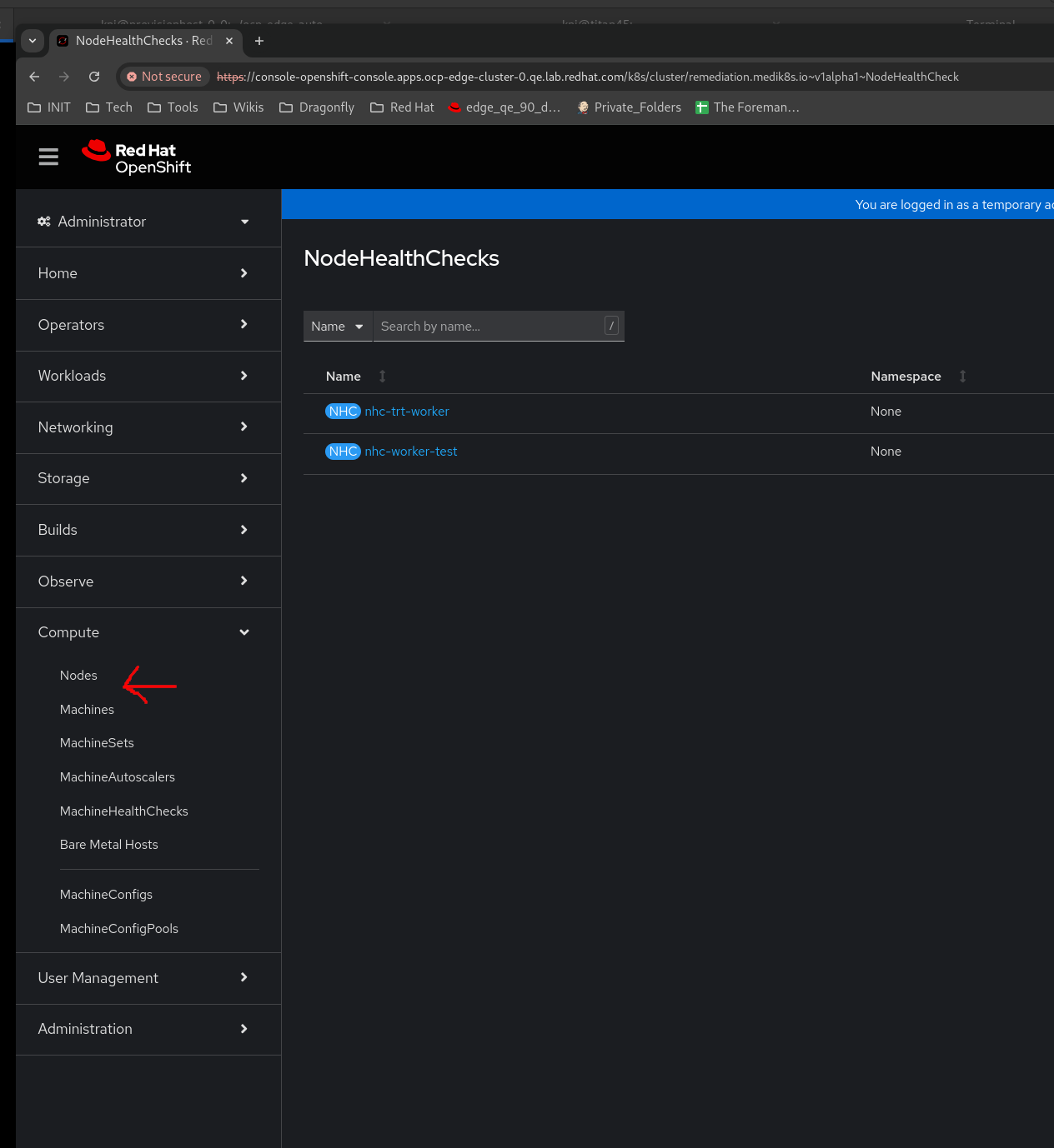 The menu entry for Compute->NodeHealthChecks is not shown in Chrome web browser. The url (https://console-openshift-console.apps.ocp-edge-cluster-0.qe.lab.redhat.com/k8s/cluster/remediation.medik8s.io~v1alpha1~NodeHealthCheck) is accessible, but not via the menu entry: