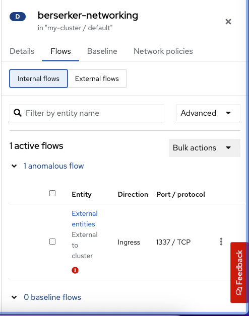 • Anomalous network flows will keep working the same way as in 4.7 = in case a external network flow is part of the baseline, it will only compare the port and protocol.