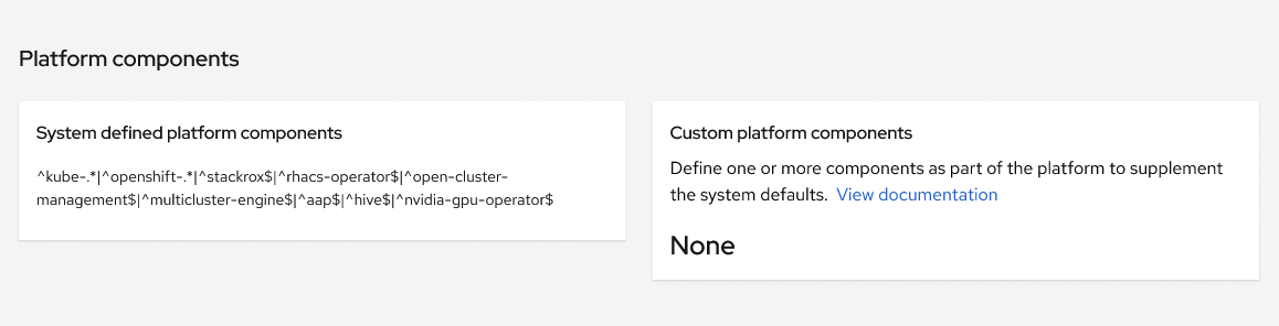 Add a "Custom platform components" card that displays the regex. It should also show an empty state in case there is none.