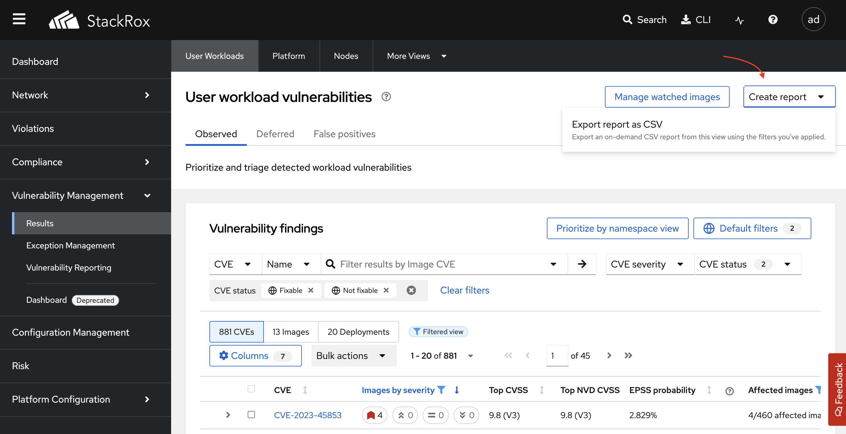 The "Create report" button is at the top right in the Results section. We want to align it with the filters. This will require breaking up the Advanced Filters component since the filter chips are in the same component and it is multiline.
