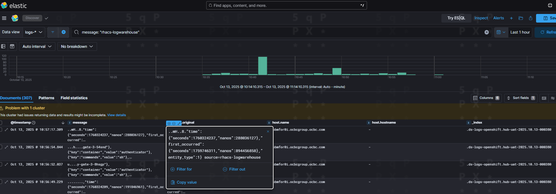 ,{"key":"container","value":"ms-transaction-ledger-core"},{"key":"commands","value":"sh -i -c TERM=xterm sh"},{"key":"Username","value":"CBSOPSDEV"},{"key":"Groups","value":"system:authenticated:oauth, system:authenticated"}]}},"type":1,"time":{"seconds":1760320025,"nanos":83122497}},Unknown macro: {"message"},{"key":"container","value":"ms-transaction-ledger-core"},{"key":"commands","value":"sh -i -c TERM=xterm sh"},{"key":"Username","value":"CBSOPSDEV"},{"key":"Groups","value":"system:authenticated:oauth, system:authenticated"}]}},"type":1,"time":{"seconds":1760319978,"nanos":938105745}}],"time":{"seconds":1760323030,"nanos":748360725},"first_occurred":{"seconds":1760319978,"nanos":938199457},"entity_type":1} source=rhacs-logwarehouse
