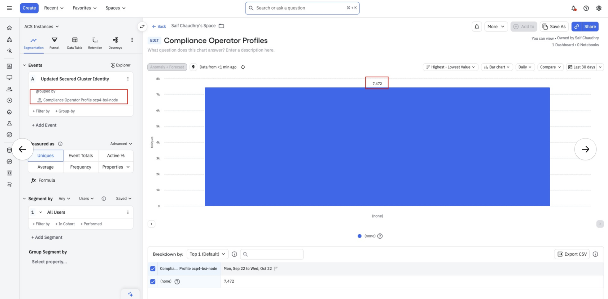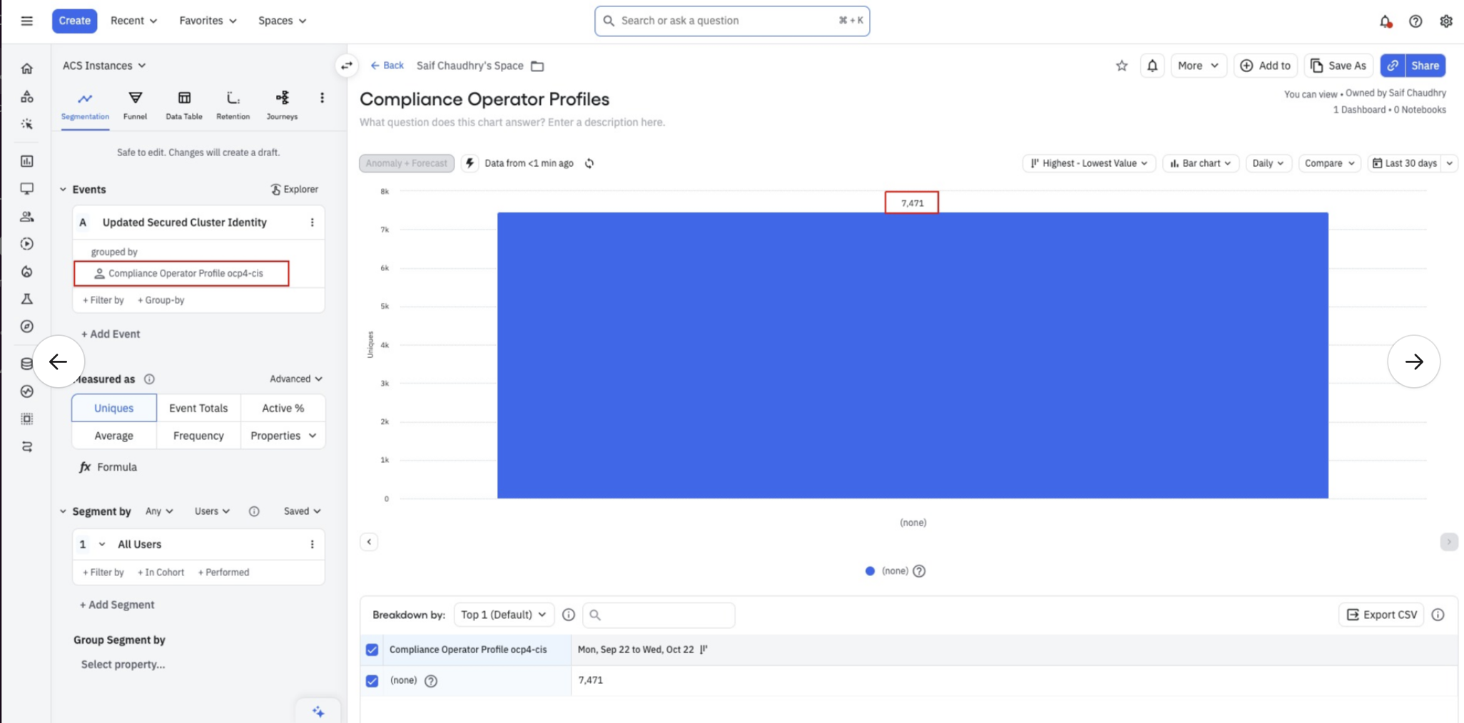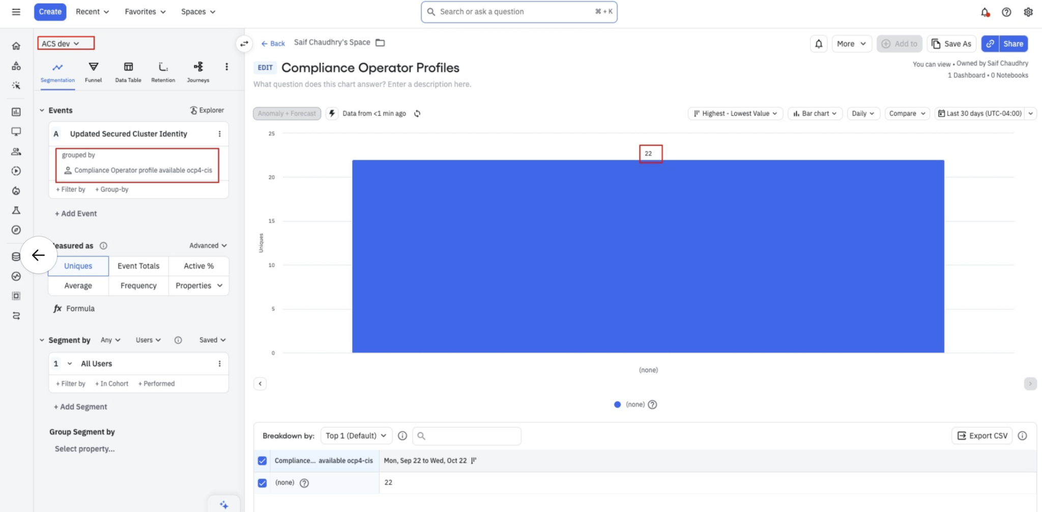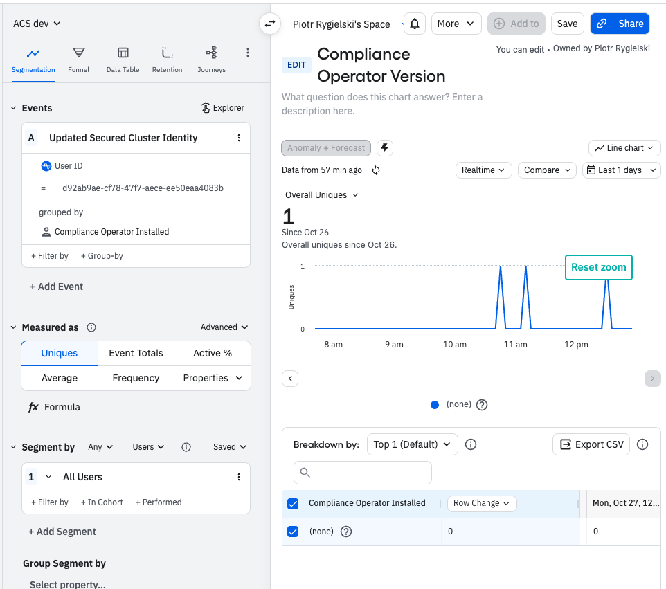 The data that we recently incoorporated to Amplitude when we did Compliance 2.0 GA has the following issues [ the last 2 graphs at the end of this dashboard https://app.amplitude.com/analytics/redhat/dashboard/h884vv5n?source=copy+url]:
