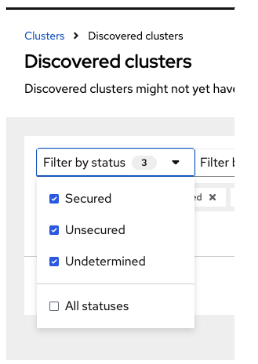 [Clusters] If you click on all available options, it doesn’t automatically select “All statuses”.
