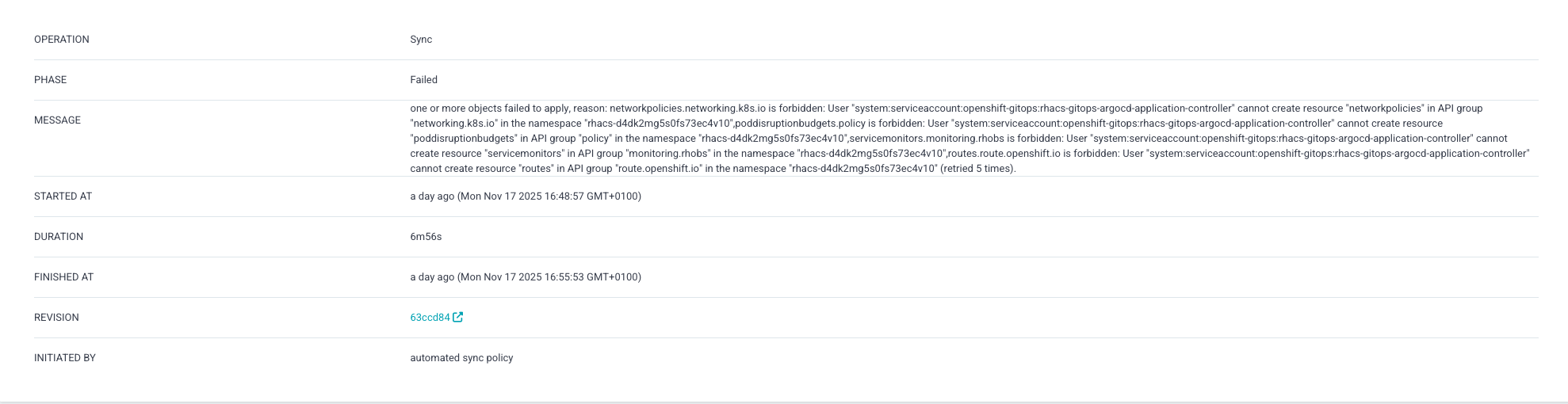 However, the tenant is present in ArgoCD, even though its synchronization has failed (see screenshots). Need to ensure that the tenant resources chart as well as the associated cloud resources are removed when the provisioning fails with (or without) timeout.
