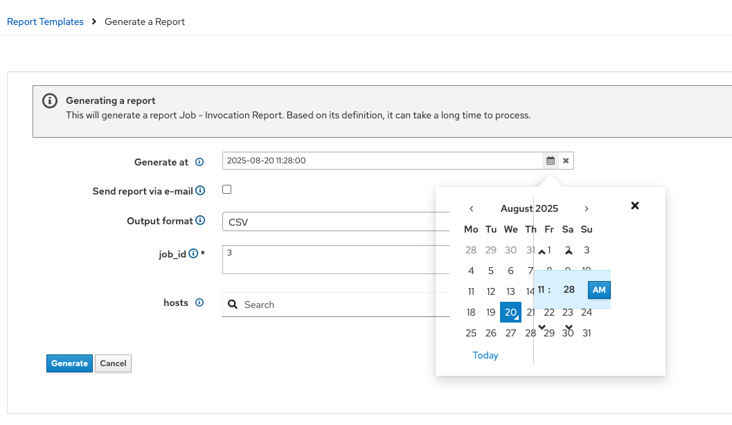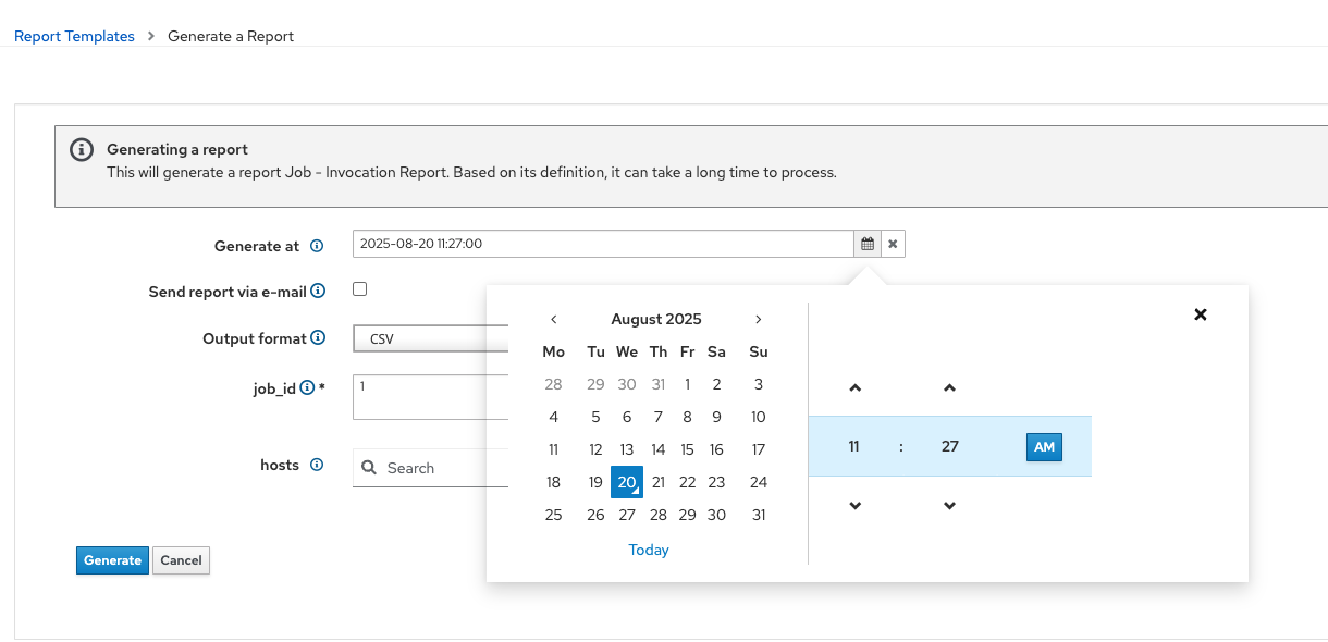 A UI display bug has been identified in the Time Picker component (within the "Generate at" date field). The visual highlight for the selected time unit is incorrect, making it unclear which part of the time (hour, minute, or AM/PM) is currently being edited.