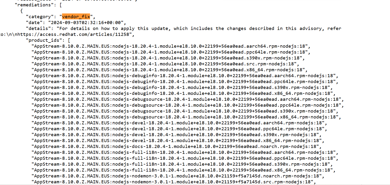 We have observed that recent Red Hat CSAF advisories related to rpmmod are missing the epoch field in the package data section.