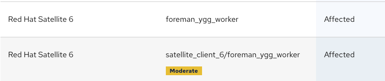 Looking at *CVE-2023-39325*, there are two product versions for the same package `foreman_ygg_worker`: