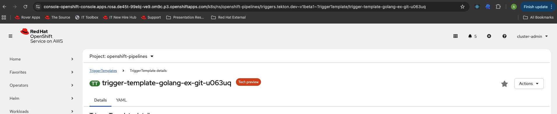 Tech preview / Dev preview label is missing in Cluster trigger binding trigger template