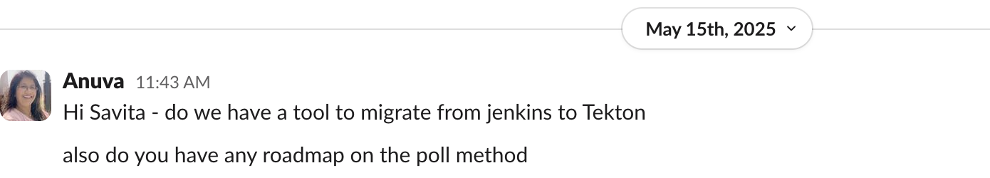 Poll based mechanism which is asked by Inforsys while trying with Triggers. The goal is to create new PipelineRuns, TaskRuns, or CustomRuns on a recurring basis without creating a webhook or writing a CronJob