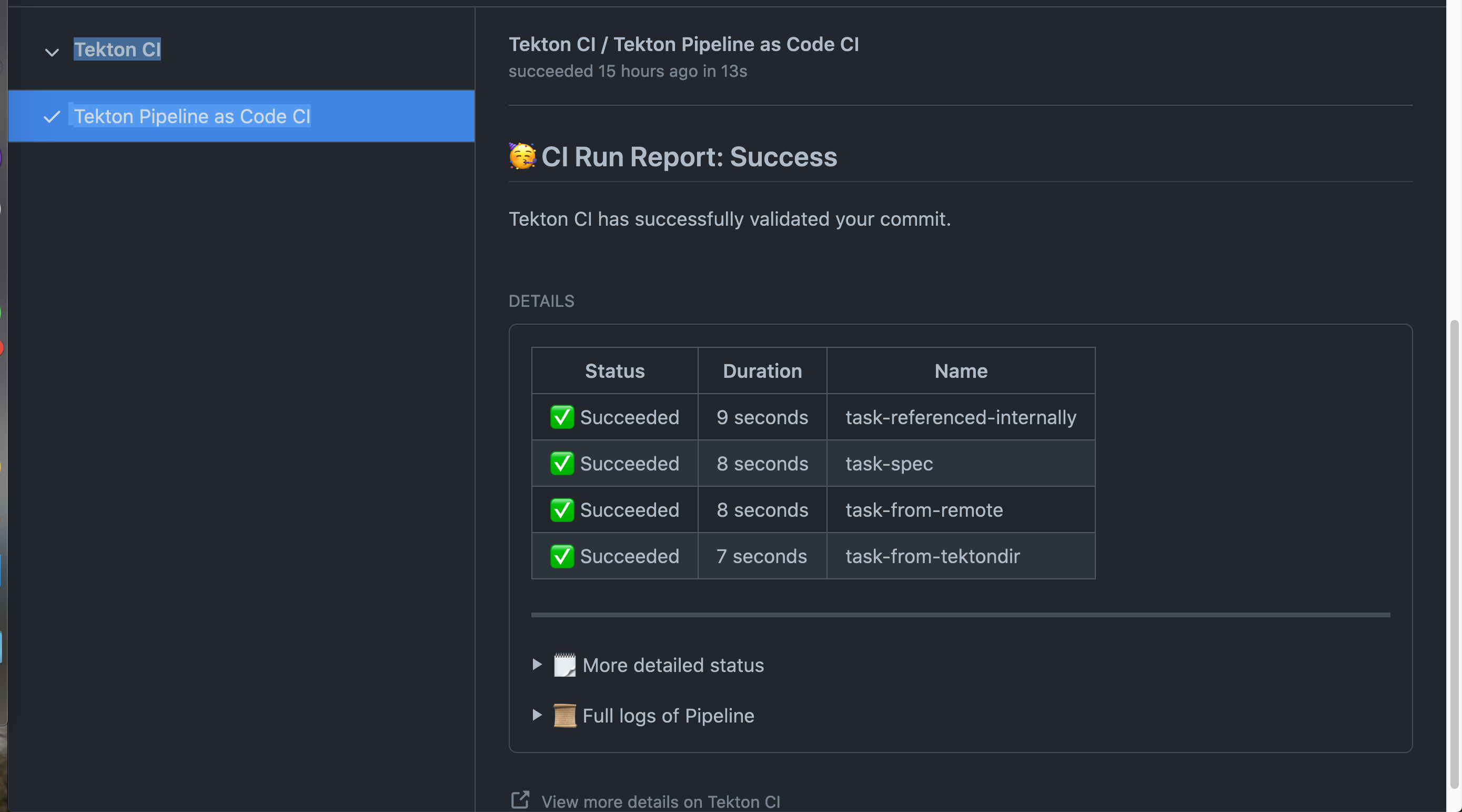 As a user when I run my PAC pipeline to validate my PullRequest I would like to be able to see in GitHub the status of my PR with a breakdown of tasks on my Pipeline that has succeeded or failed.