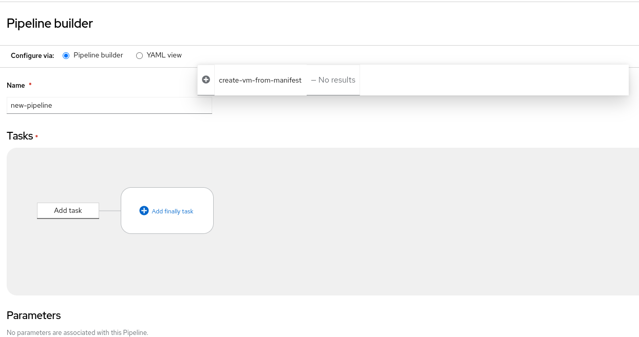 E.g. task located here https://github.com/openshift-pipelines/tektoncd-catalog/tree/p/tasks/create-vm-from-manifest is not available for adding via pipeline builder UI - see picture