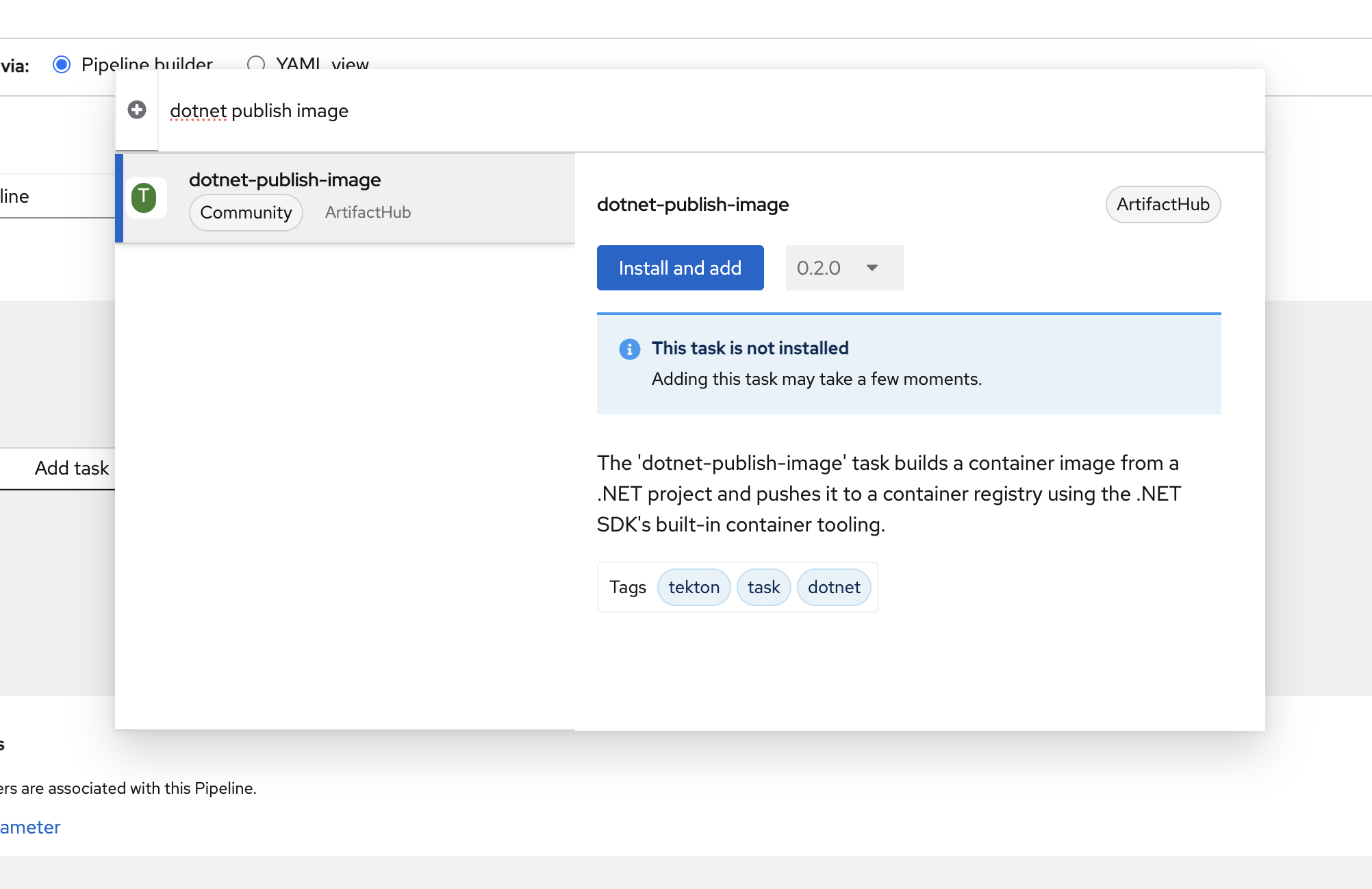 When user tries to add tasks which are hosted on e.g. artifact hub, the UI shows only subset of available tasks.