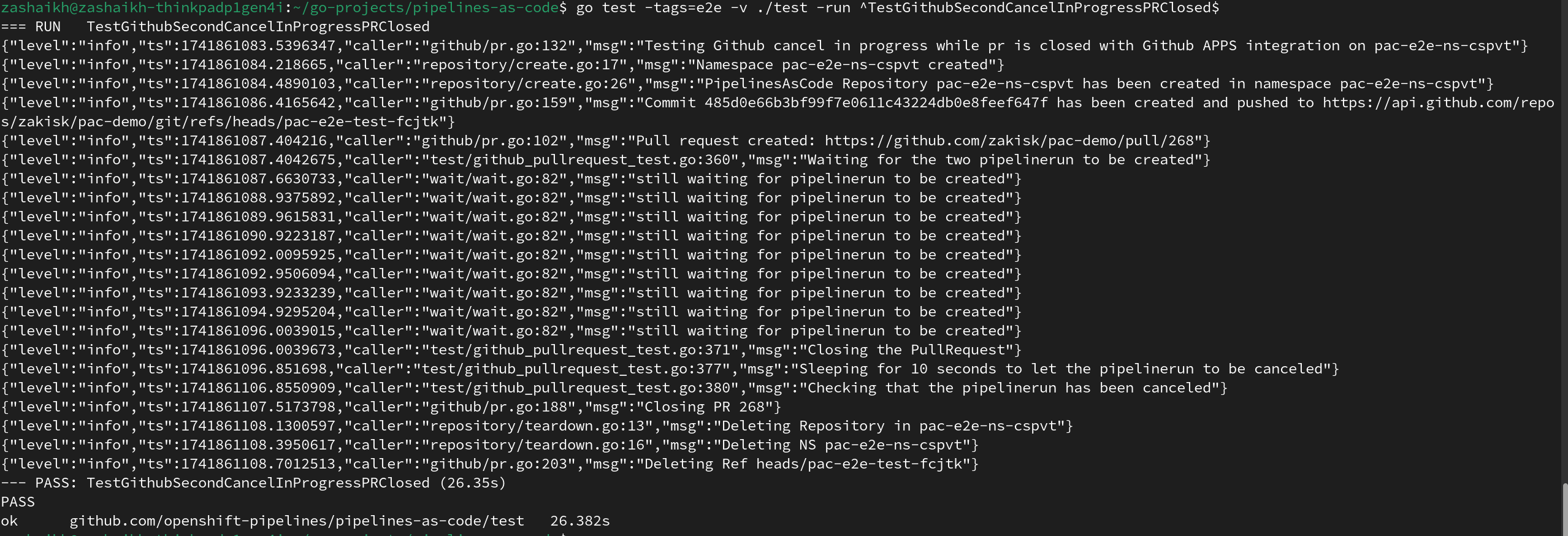 1. When a PR is closed or merged, any PipelineRuns associated with it are automatically canceled.