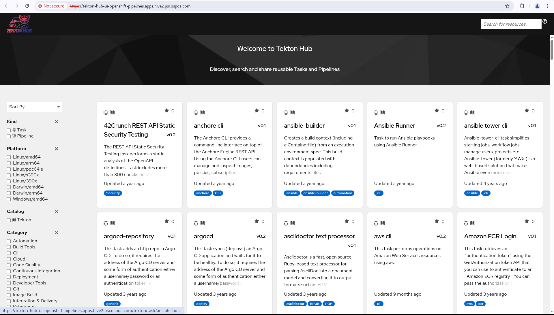 - download latest build of CLI from https://download.eng.bos.redhat.com/brewroot/vol/rhel-8/packages/openshift-pipelines-client