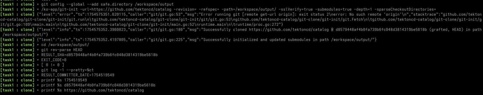 apiVersion: tekton.dev/v1 kind: PipelineRun metadata: generateName: git-resolver- spec: workspaces: - name: output # this workspace name must be declared in the Pipeline volumeClaimTemplate: spec: accessModes: - ReadWriteOnce # access mode may affect how you can use this volume in parallel tasks resources: requests: storage: 1Gi pipelineSpec: workspaces: - name: output tasks: - name: task1 workspaces: - name: output taskRef: resolver: git params: - name: url value: https://git@github.com/vdemeester/private-tasks.git - name: pathInRepo value: /task/git-clone/0.10/git-clone.yaml - name: revision value: main # my-secret-token should be created in the namespace where the # pipelinerun is created and contain a GitHub personal access # token in the token key of the secret. - name: gitToken value: github-token - name: gitTokenKey value: token params: - name: url value: https://github.com/tektoncd/catalog - name: deleteExisting value: "true"