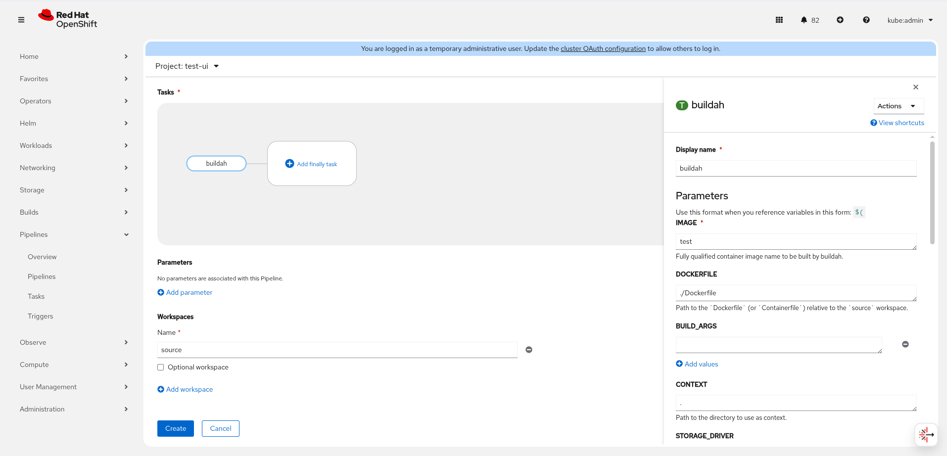 2. Add the buildah task to a new pipeline.