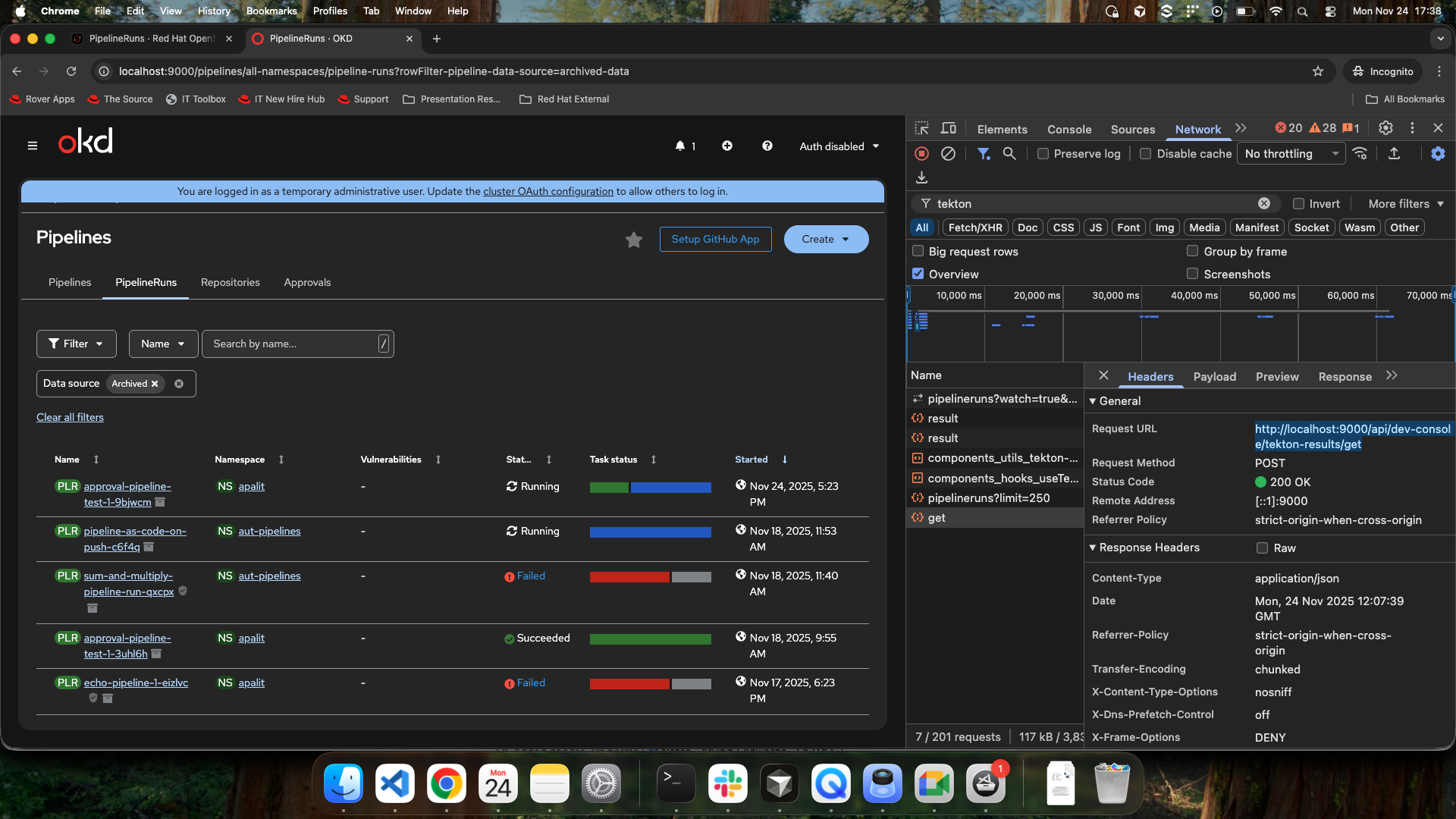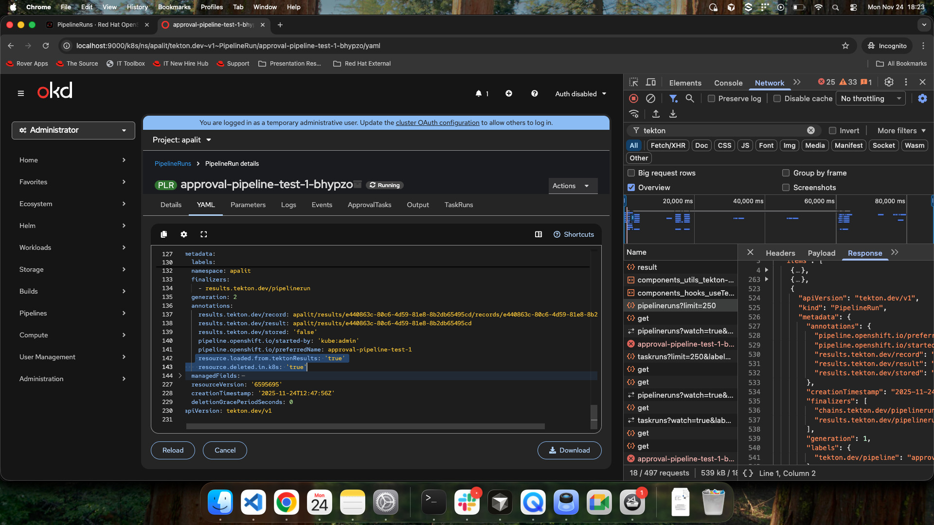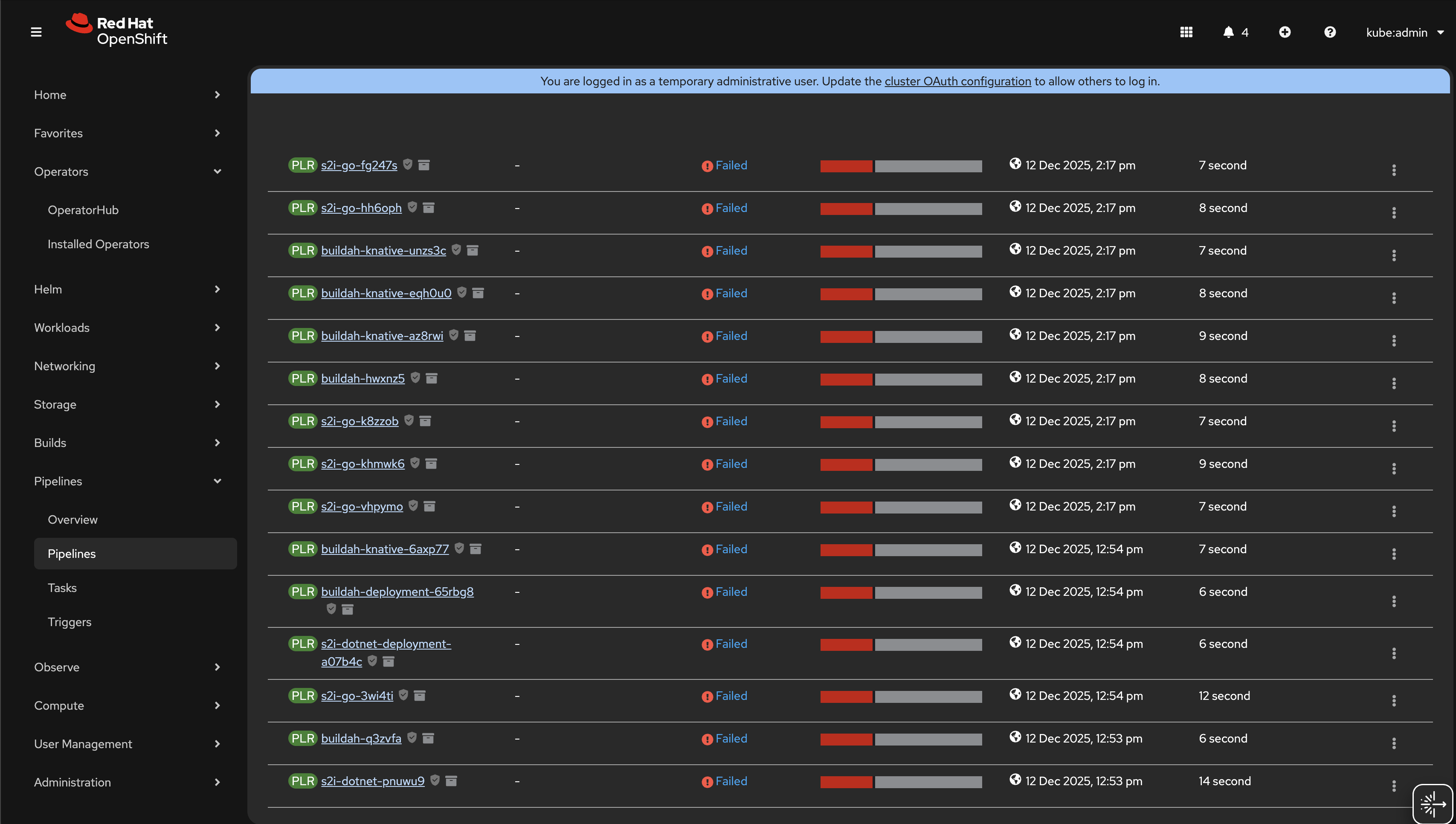 - Open the PipelineRun list page.
