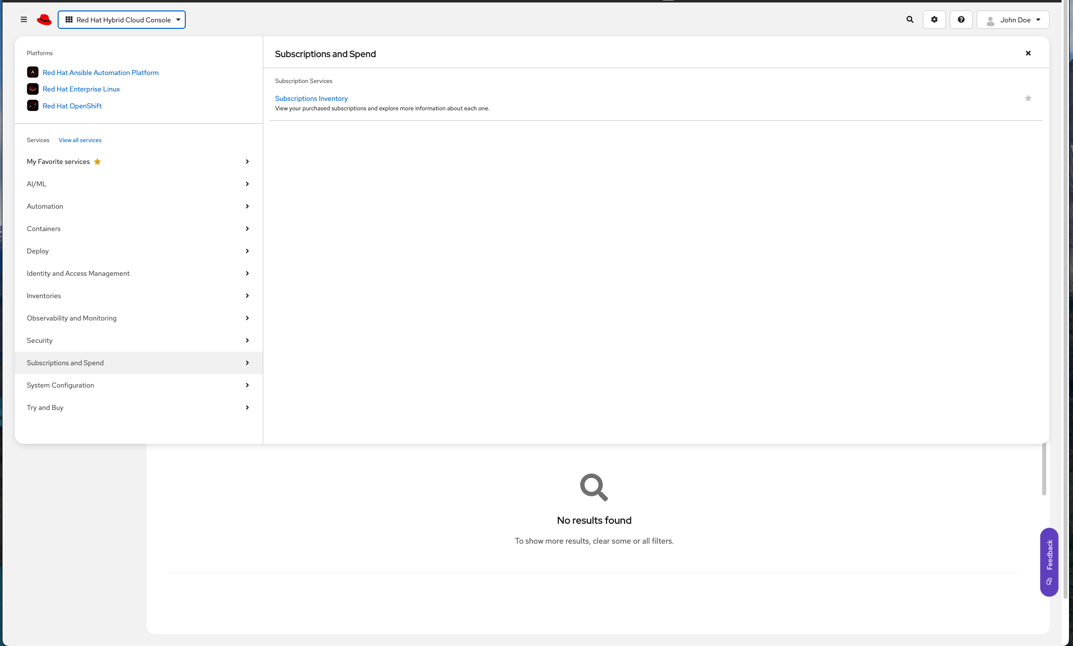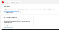 The top dropdown and "all services" navigation menus are missing links to Subscription Usage in Ephemeral.