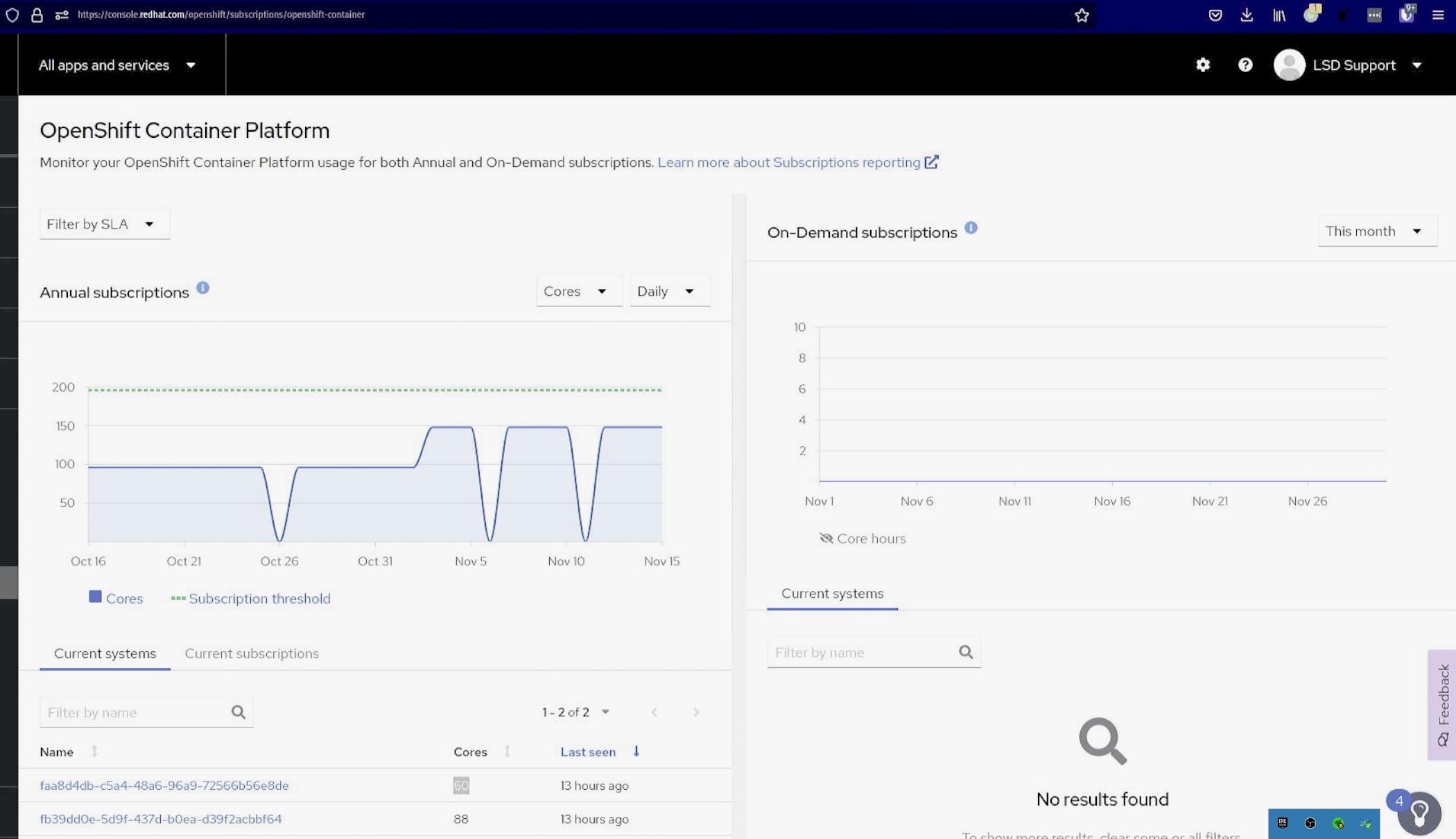 The clusters are under-licensed even though the subscription-watch graph shows them as under-provisioned.