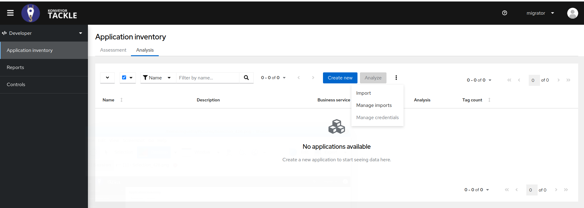 — "Create new" on Application Inventory -> Analysis page