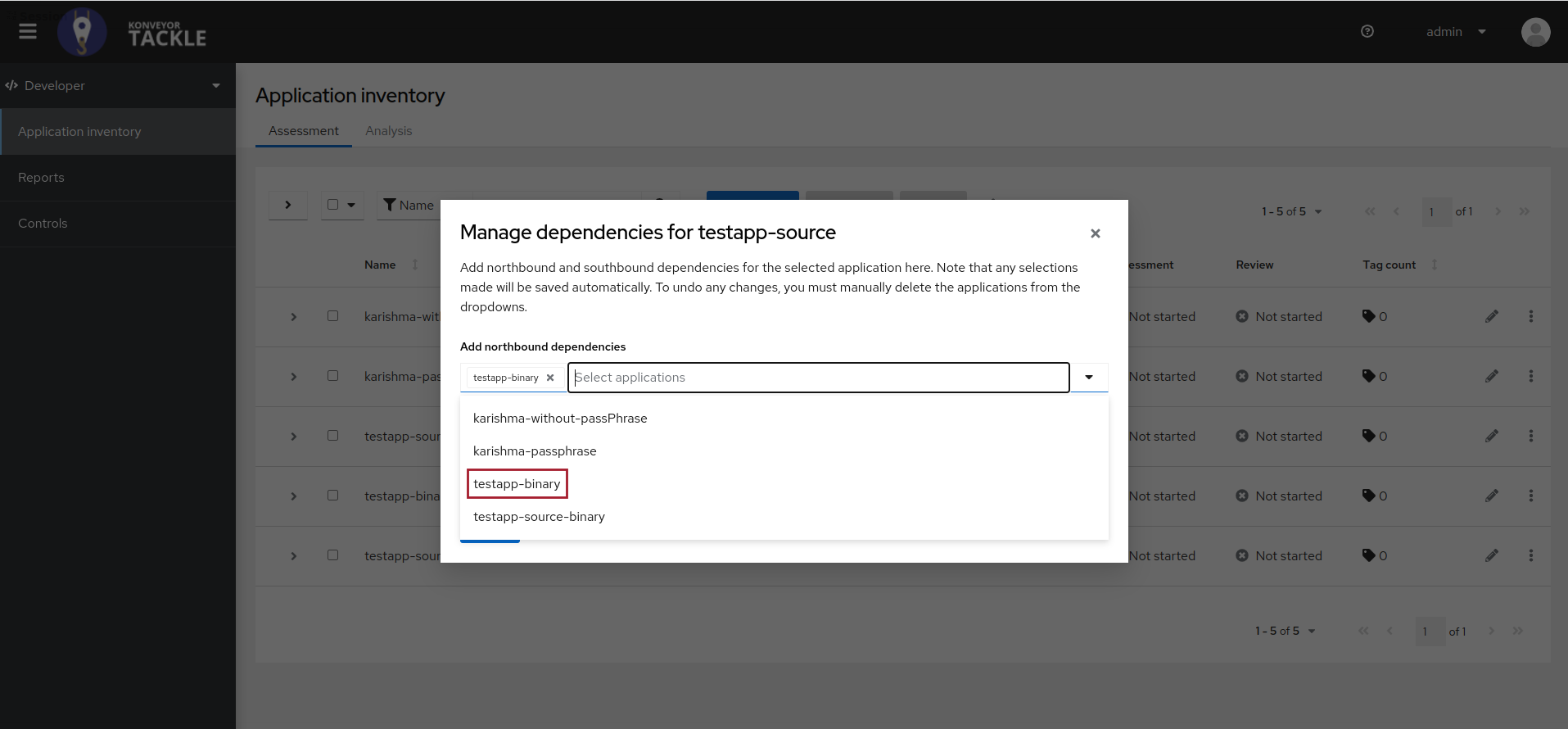 When adding application/s as northbound or southbound dependencies, the selected app is still available in the applications list and can be selected (please see attachment).
