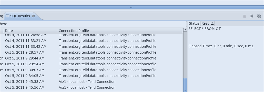 3) For Preview queries, the 'Connection Profile' column value is not user readable. It is something like 'Transient.org.teiid.datatools.connectivity.connectionProfile'. For previews, it should be something that makes sense to the user - maybe 'Preview - localhost - Teiid Connection' (to be consistent with other connectionProfile infos).