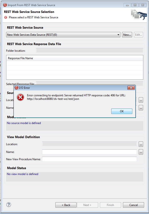 I have my small web application that should simulate a REST web service (it simply returns XML and JSON strings), when I have annotation @Produces("application/json") and I try to import from this REST JSON, TD gives me an error that server returned response code 406.