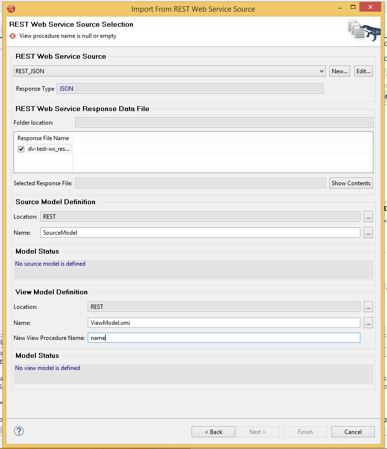 1. Select File -> Import -> Web Service Source >> Source and View model(REST)