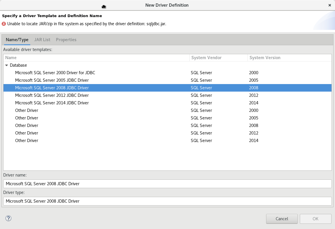 When I want to create a connection profile for SQL Server 2012 and 2014, after creating a driver, connection profile doesn't show any labels for fill information about DB (screenshot1). SQL Server 2008 works great (screenshot2).