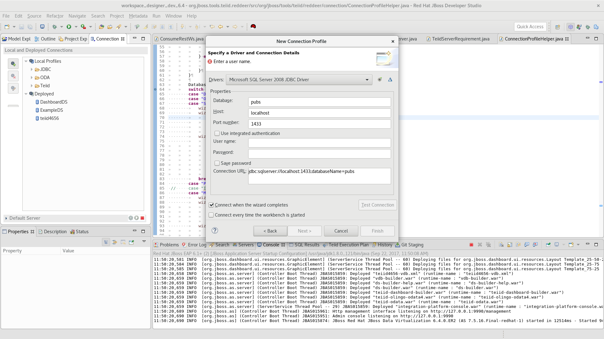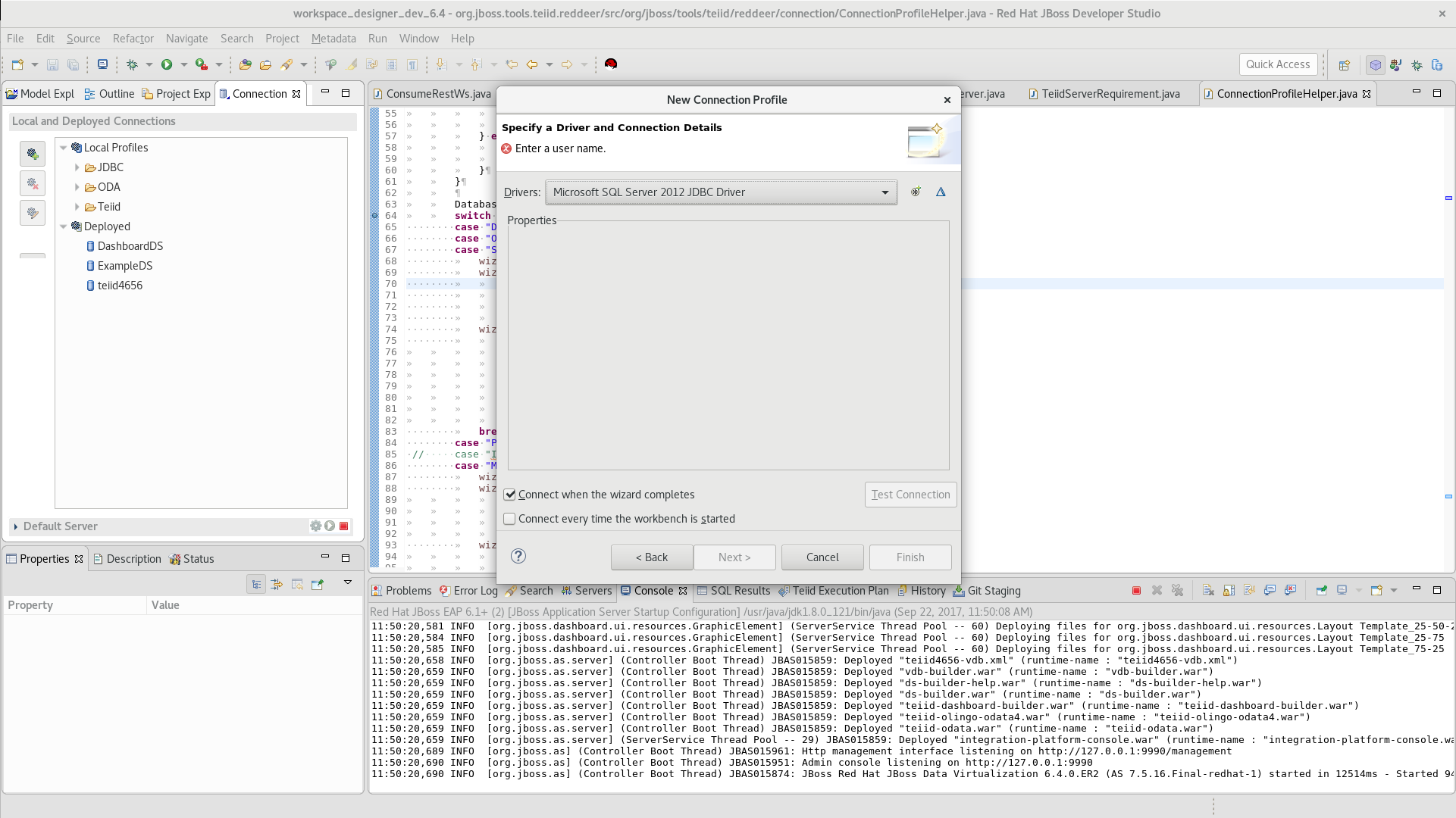- Create driver ('Connection profile' wizard is not refreshed/enabled)