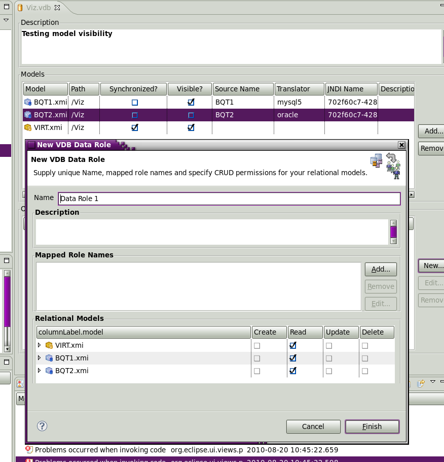 At the risk of opening huge cans of worms, a model which has been marked NOT VISIBLE should not be shown in the data roles editor. Presently, they are shown in that editor. They should not be.