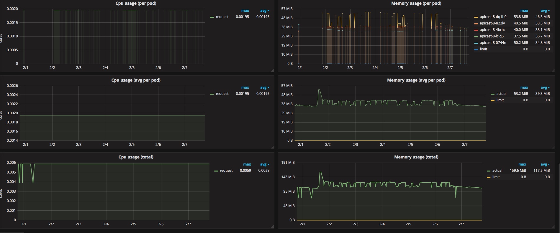 - Our APIcast cloud hosted running on top of openshift, is handling some traffic and just consuming 35 MiB. Setting this value to 64~128 should be fine, just take care of the number of workers (APICAST_WORKERS), and document how this affects the memory consumption of APIcast.