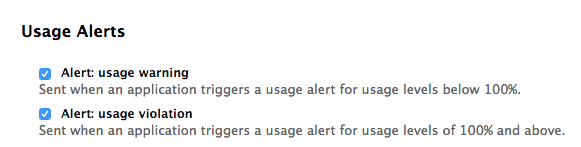 2. Go to Personal settings> Notification preferences and check boxes to receive usage alerts