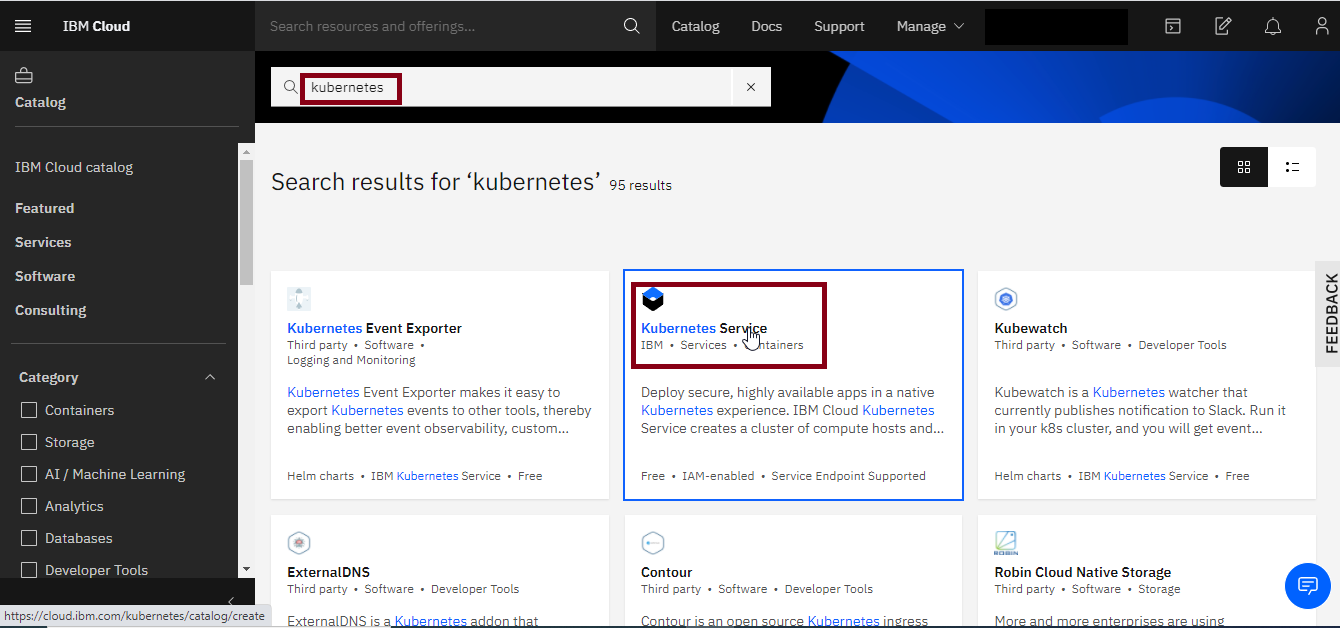 - In search catalog box, search for IBM Cloud Block Storage Plug-in and click on it