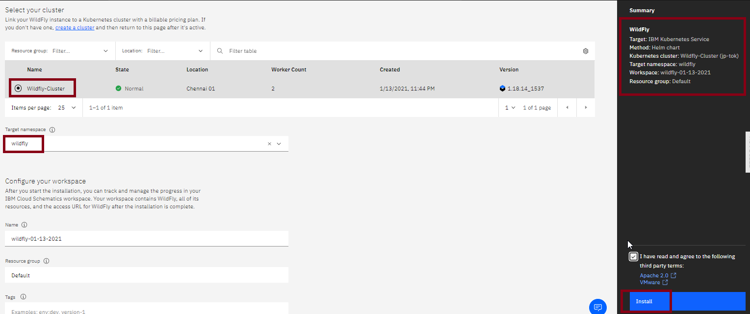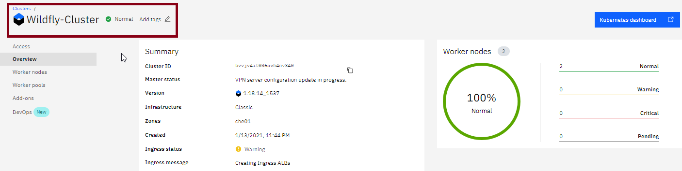 - Kubernetes cluster: Wildfly-Cluster(jp-tok)