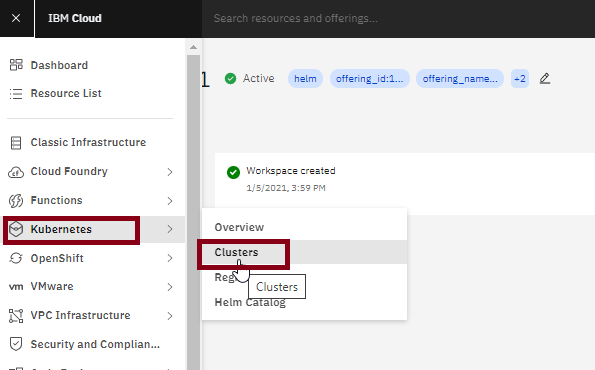 - Go to the Resources List in the Left Navigation Menu and click on ** Kubernetes and then Clusters.