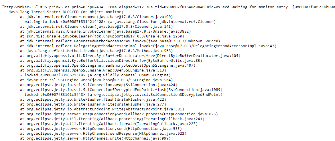 From the Java thread dump file, we can found the performance bottleneck is the ByteBuffer allocation.